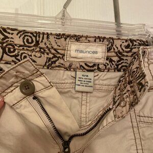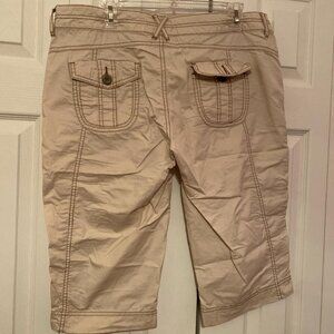 Cream and tan capri shorts from Maurice’s. Very light and breathable; can be dressed up or down. Perfect for any style, particularly boho or workwear!