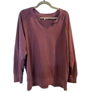 Maurices Lace Panel Pullover Sweatshirt Mauve Purple Size 2X