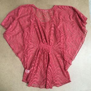 Maurices Lace Swim Cover Up/Poncho Size M Rust Orange Elastic Waist