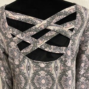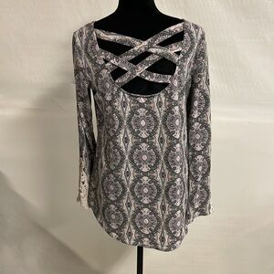 Tunic by Maurices with Lace Trimmed Sleeves and Criss Cross Back detailing.