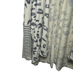 Maurices Large Animal Print Stripe Open Front Cardigan Cream Blue