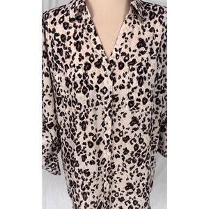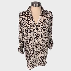 Maurices Large Brown Cream Black Cheetah Print Button Front Blouse