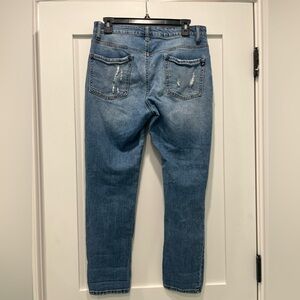 Chic distressed skinny jeans. Light blue wash. Perfect for casual outings. Adds edge to any outfit. Very soft and stretchy. Like new condition.