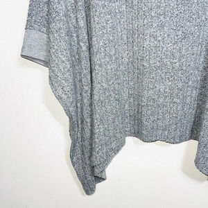 Maurices heather gray rib oversized poncho sweater. In excellent condition! V neckline. Slouchy dolman sleeves. 3/4 sleeves with fitted cuffs. Asymmetrical bottom hem. Soft plush rib material. Oversized poncho fit. Light heather gray color. Size small/medium.