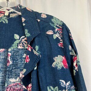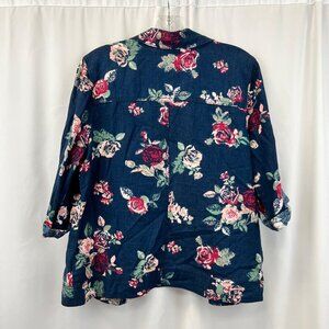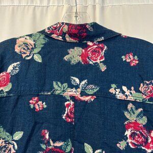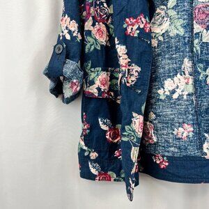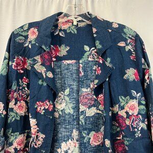 Maurices Lightweight Button Up Jacket Blue/Multi Floral 3/4 Roll Tab Sleeve S