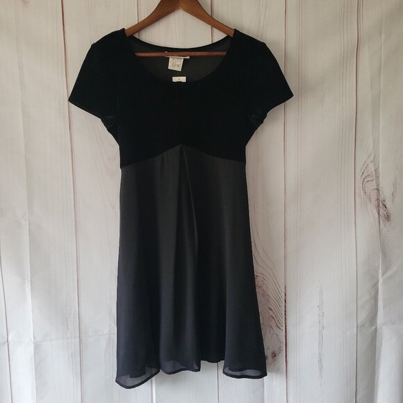 Maurices Little Black Dress Baby Doll Midi Dress, Women’s Sz 10, Velvet Top/Flowy Bottom, Waist Tie, Runs Small See Measurements, NWT