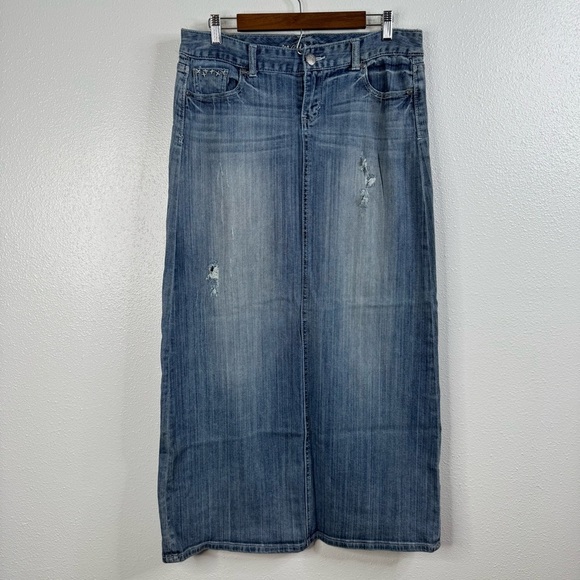 Maurices Long Distressed Denim Maxi Skirt Size 7/8