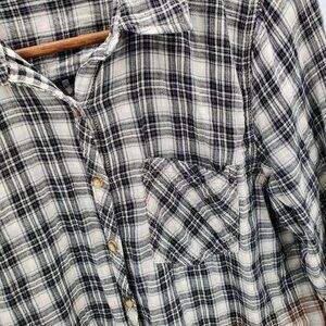 Maurices Long Sleeve Button Up Plaid Flannel Shirt Size M Ombre Bleach Dipped