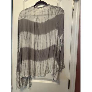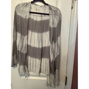 EUC Maurice's long sleeve sheer coverup or cardigan. Fits size Small/Medium. Very flowly and light. Gray/white tye dye pattern.