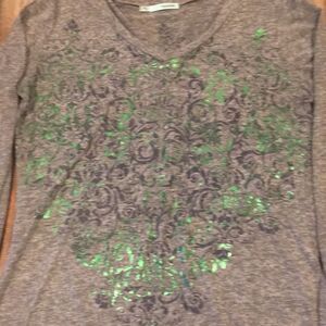 Maurice’s Gray Long Sleeve Shirt with shimmering green and blue print