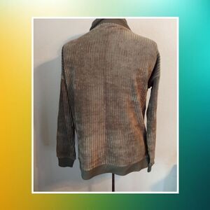 Long sleeved, cowl neck top with kangaroo pocket in front.