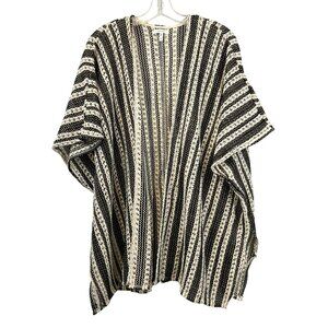 Maurices Loose Embroidered Open Front Poncho Black/Cream One Size