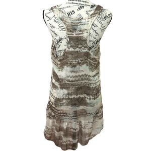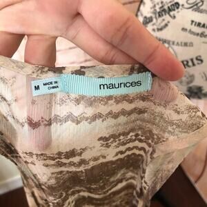 Maurices MEDIUM Brown Sheer Patterned Flair Waist Button Up Racerback Tank