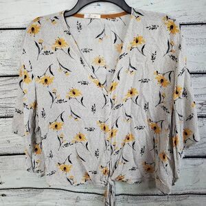 Maurices MEDIUM Gray Floral Polka-dot Blouse