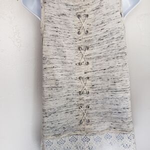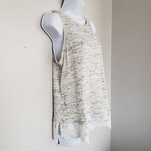 Maurices Marled Grey Tank Top X Back Lace Trim MED