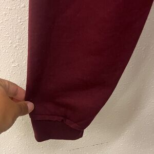 Warm maroon hoodie with soft fleece lining. Features a drawstring hood