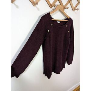Maurice's Maroon Long Sleeve Button Detail Tunic Sweater - Size L