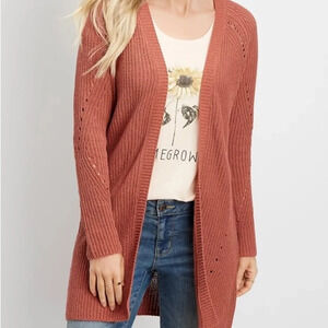 Maurices Matte Pink Chenille Knit Open Front Longline Cardigan Xsmall Women’s