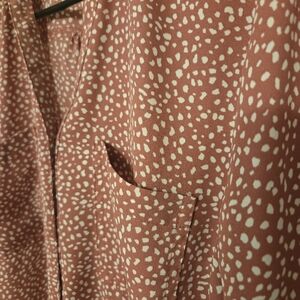 Mauve with white dots, matching Mauve buttons.