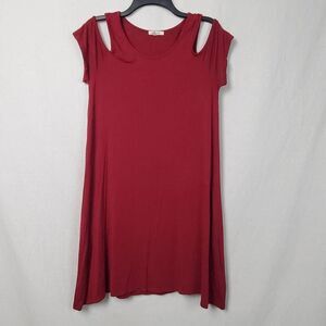 Maurices Medium Burgundy Solid Cold-Shoulder Cap Sleeve T-Shirt Dress