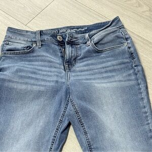 Stylish straight leg jeans. Light blue wash. Comfortable fit. Perfect for casual wear.
