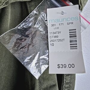 Maurices Military Green High Rise Paperbag Waist Pants NWT