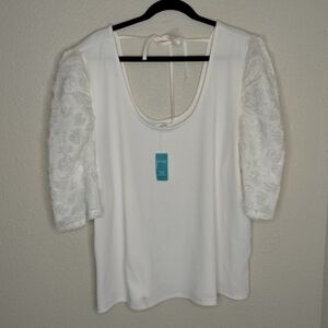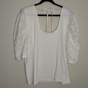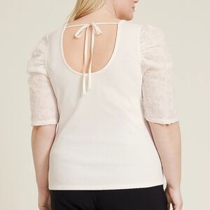 Maurices Mixed Media Scoop Neck Blouse Ecru Plus Size 3X
