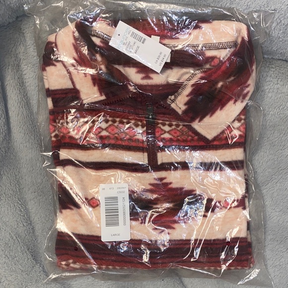 Jacket with striking pattern. Features a practical half-zip. Perfect for chilly days. Never worn, only taken out of packaging for pictures.