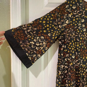 Maurice's NWT Black Brown Paisley Floral Print Kimono Size Small with Fringe