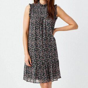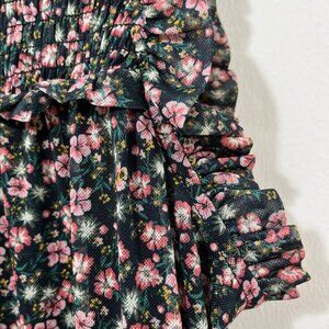 Featuring a delicate ditsy floral print in soft pinks on a deep black background, this dress is all about romantic vibes and timeless femininity.