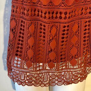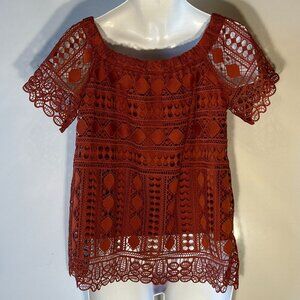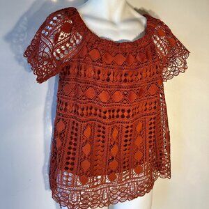 Maurices NWT SZ L Rust crochet lace blouse Boho Chic Cottage Prairie Artsy Romantic