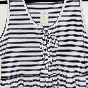 Brand new Maurices white & navy blue stripe babydoll tank top. New with tags & in perfect condition! Scoop neckline. Lace-up front. Sleeveless. Empire waistline. Babydoll style top. White with navy blue stripes. Size medium.