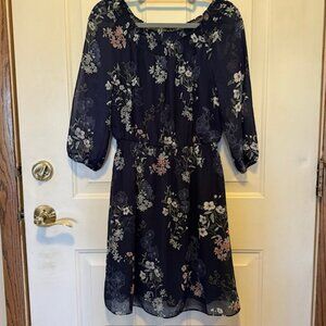 Lined (except for sleeves which are sheer) and has elastic at waist and neckline.