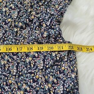 Maurices Navy Blue Floral Print Tie Neck Blouse