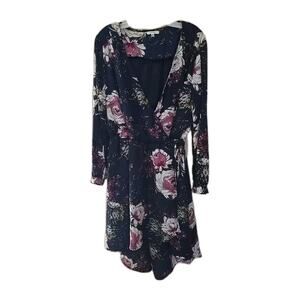 Maurices Navy Blue Floral Print V-Neck Long Sleeve Wrap Dress Womans Size 2XL. Pre-owned