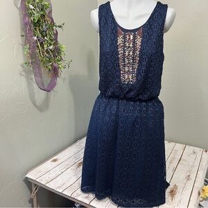 Maurices Navy Blue Eyelet Sleeveless Lace back Dress size small