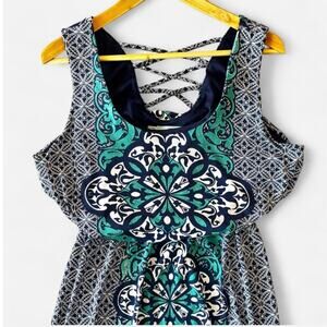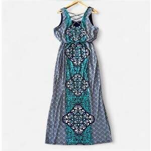 Maurice’s Navy Blue and Teal Cross Back Sleeveless Maxi Dress Size L