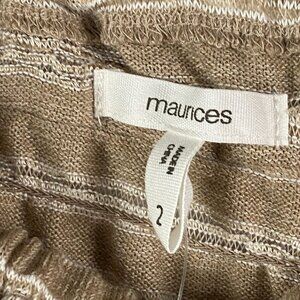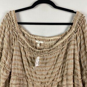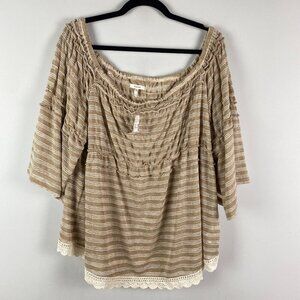 Maurices Off the Shoulder Top Size 2X Tan Stripe 3/4 Sleeves Crochet Trim