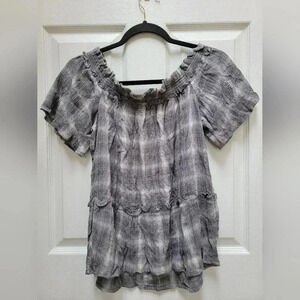 Maurices Off The Shoulder Elastic Plaid Blouse Size Medium NWT