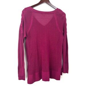 Maurices Open Knit Sweater Maroon Cut Out Shoulder Lightweight L Pullover 1159T