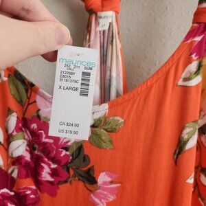 Maurices Orange Floral Print Racerback Tank NWT Size XL