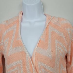 Maurices Orange White Chevron Long Sleeve Cardigan Hooded Neon Medium