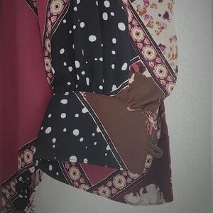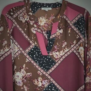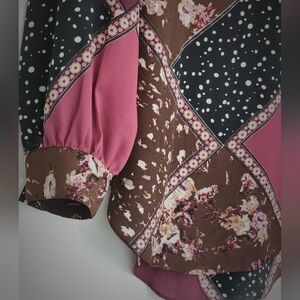 Maurices Patchwork Tunic Blouse Pullover Semi-Sheer Long Sleeve Button Cuff- M