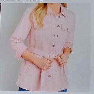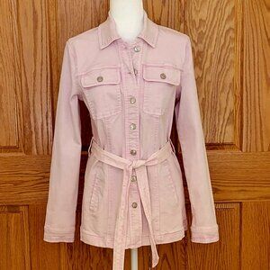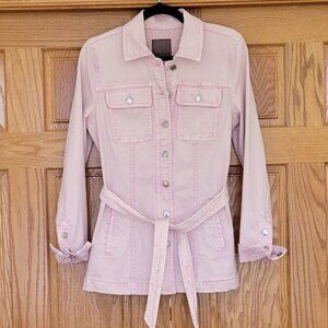 Maurices Light Pink Denim Belted Trench Jean Jacket