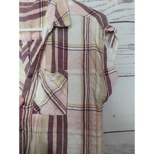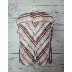 Maurices Pink Plaid Flannel Short Sleeve Button Down Top Womans Size Medium