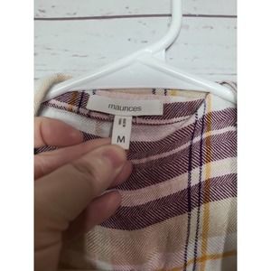 Maurices Pink Plaid Flannel Short Sleeve Button Down Top Womans Size Medium. Small hole on the shoulder and a few minor runs, pictured. Previously worn as distressed/90's grunge style. Pre-owned