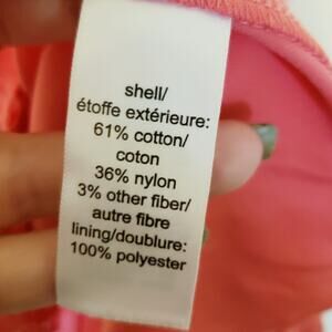 61% cotton 36% nylon 3% other liner polyester