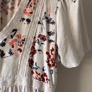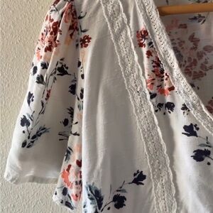 This elegant blouse from Maurices showcases a fitted silhouette with pleated short sleeves and a soft V-neckline. The pink and white floral pattern adds a romantic touch, perfect for both casual outings and special occasions.