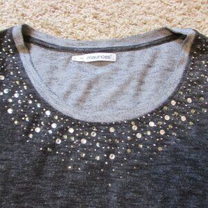 Maurices Plus 0 (14W according to their size chart) Black Gray Rhinestone Bead Neckline Tunic Knit Shirt
