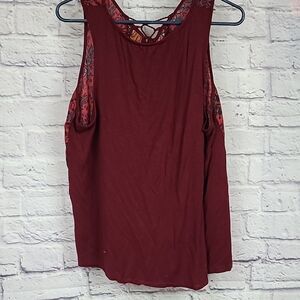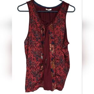 Maurices Plus 1X 16/18 Sleeveless Mixed Media Floral Blouse Tassel Lace Up Top
